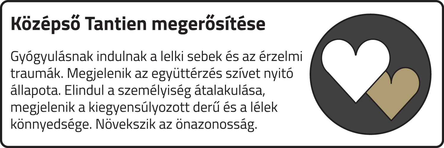 Középhaladóként a csikungban való elmélyülés indítja be a változásokat. A Középső Tantienen végzett munkának köszönhetően elsősorban az érzelmek átdolgozása történik meg, itt kezdődik el a csikung beépülése az életedbe. Egyre több saját élményed gyűlik össze, megerősödsz változásod folyamatában. Fokozatosan körvonalazódik benned, hogy mi az, ami nem Te vagy, így érzelmileg kevésbé leszel rángatható. A Felső Tantienen végzett erőteljesebb munkához szükség van az érzelmi sebek begyógyítására - amit a Középső Tantiennel végzett munka kapcsán tudsz megtenni.